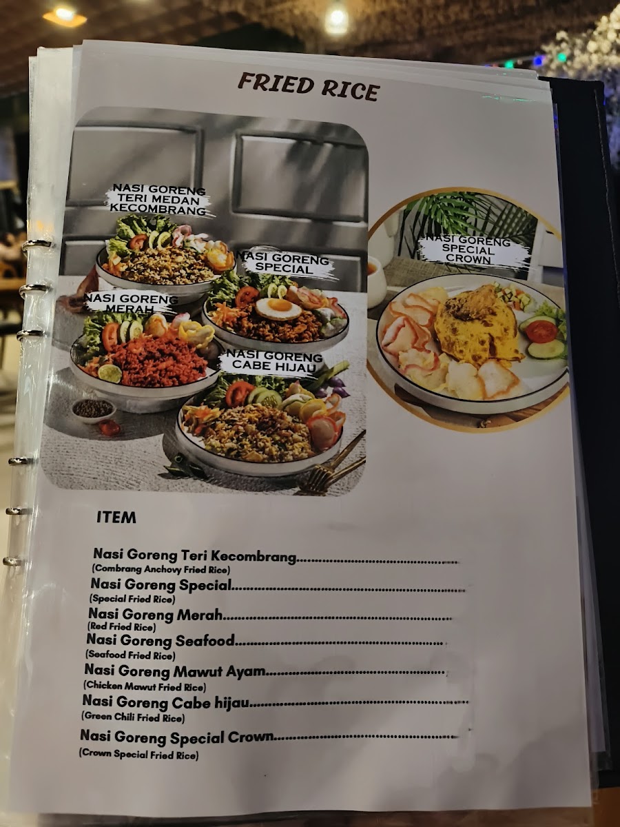 The menu at Crown Billiard & Cafe offers a variety of beverages and light food options suitable for casual dining and social gatherings. Visitors can find a selection of coffee and specialty drinks, including unique choices like pandan coffee and raspberry mocha. The beverage menu also features beer and other alcoholic drinks, highlighted by selections such as Beer N Surya.